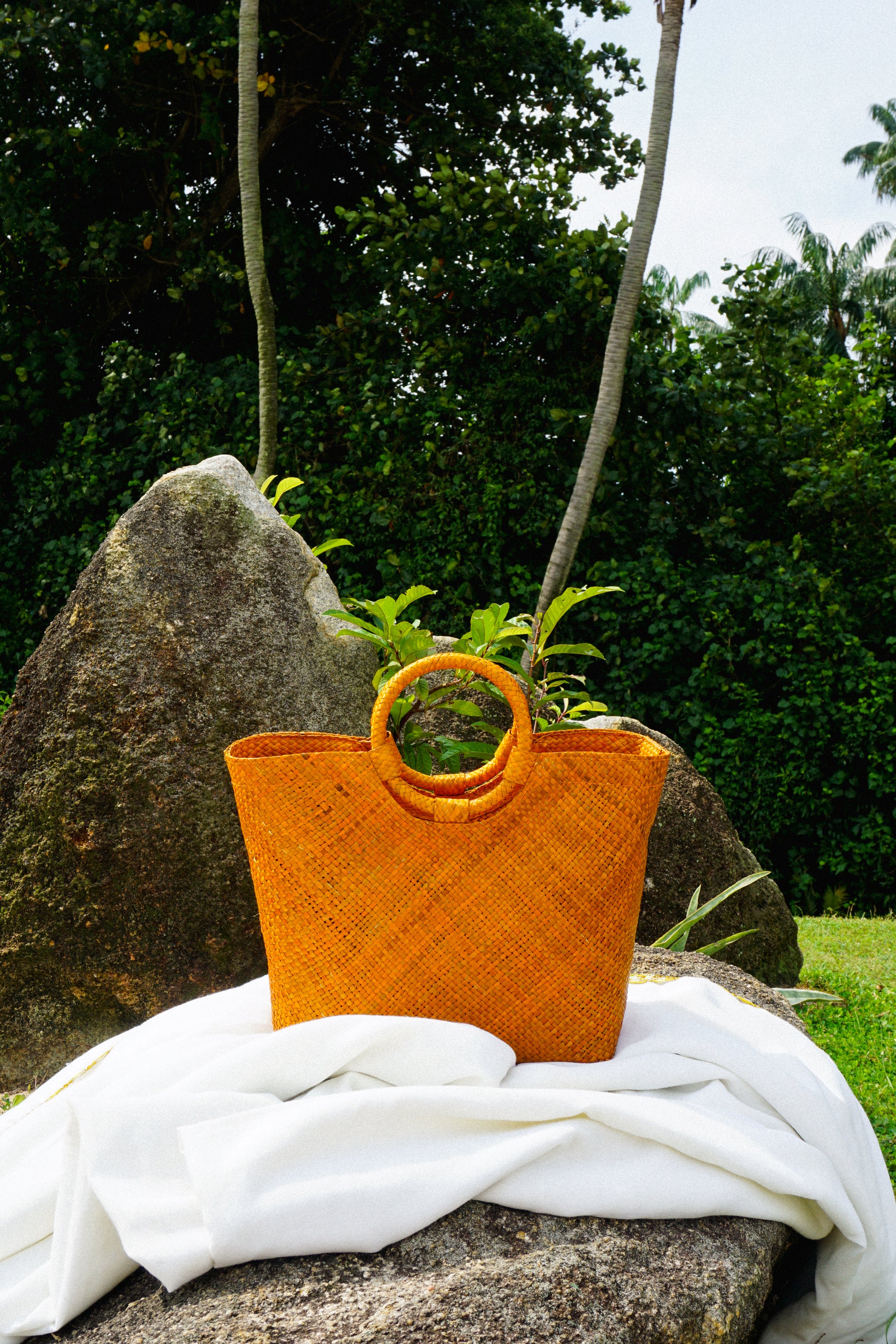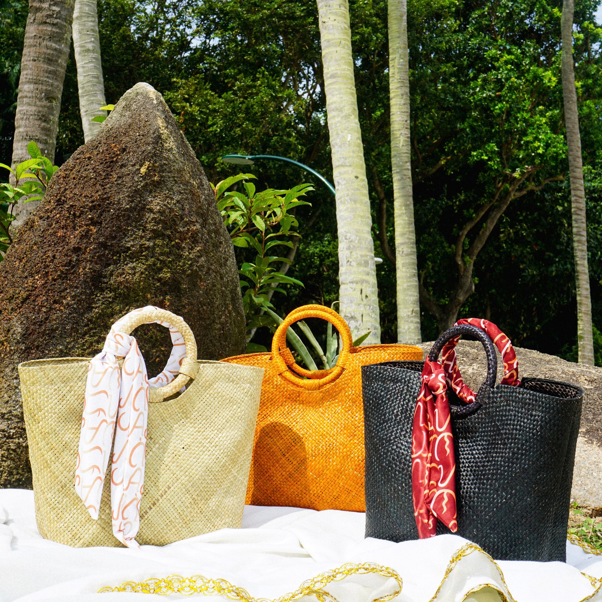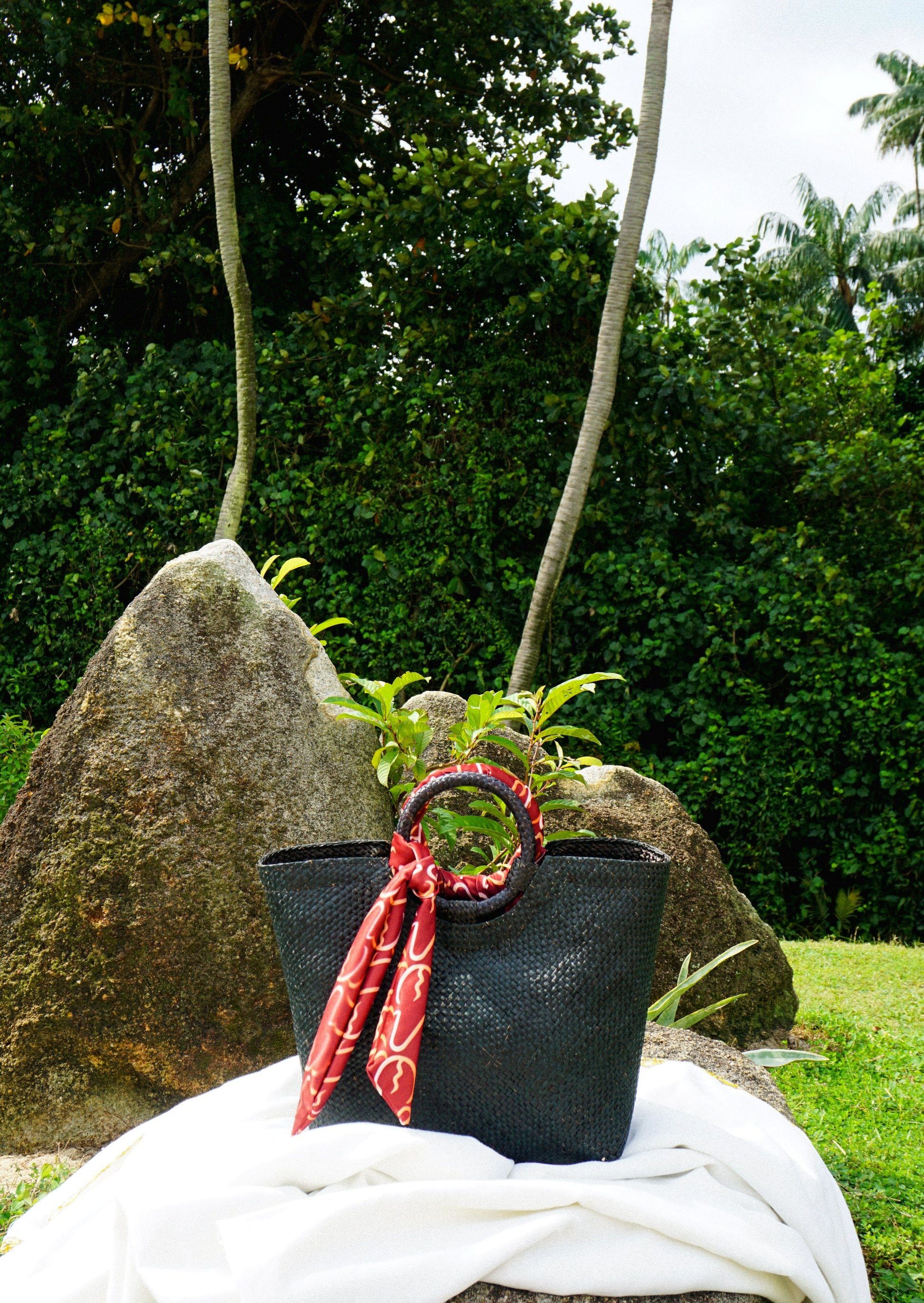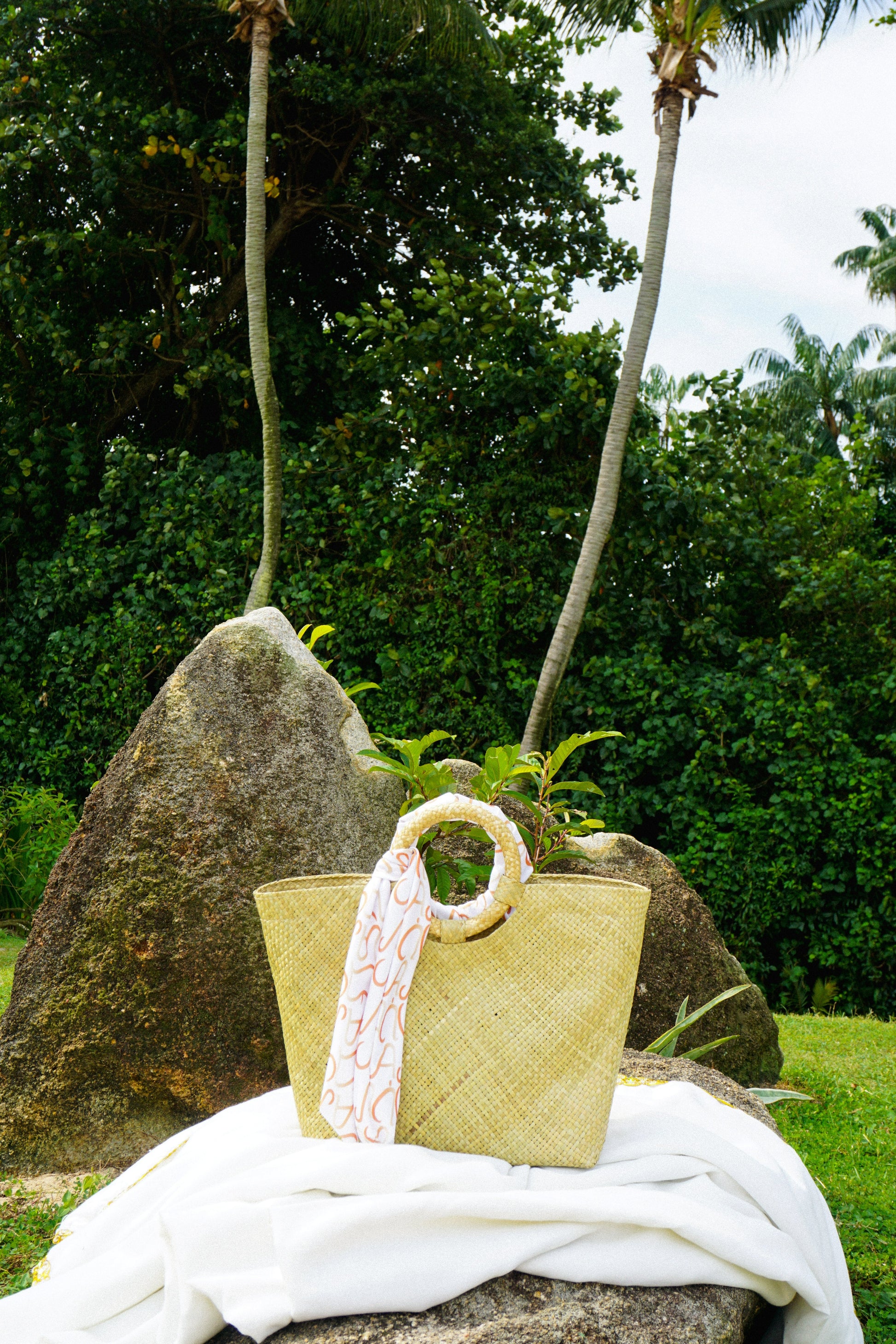 - The bag includes 2x complimentary scarves made from fabric scraps of old swimsuit samples