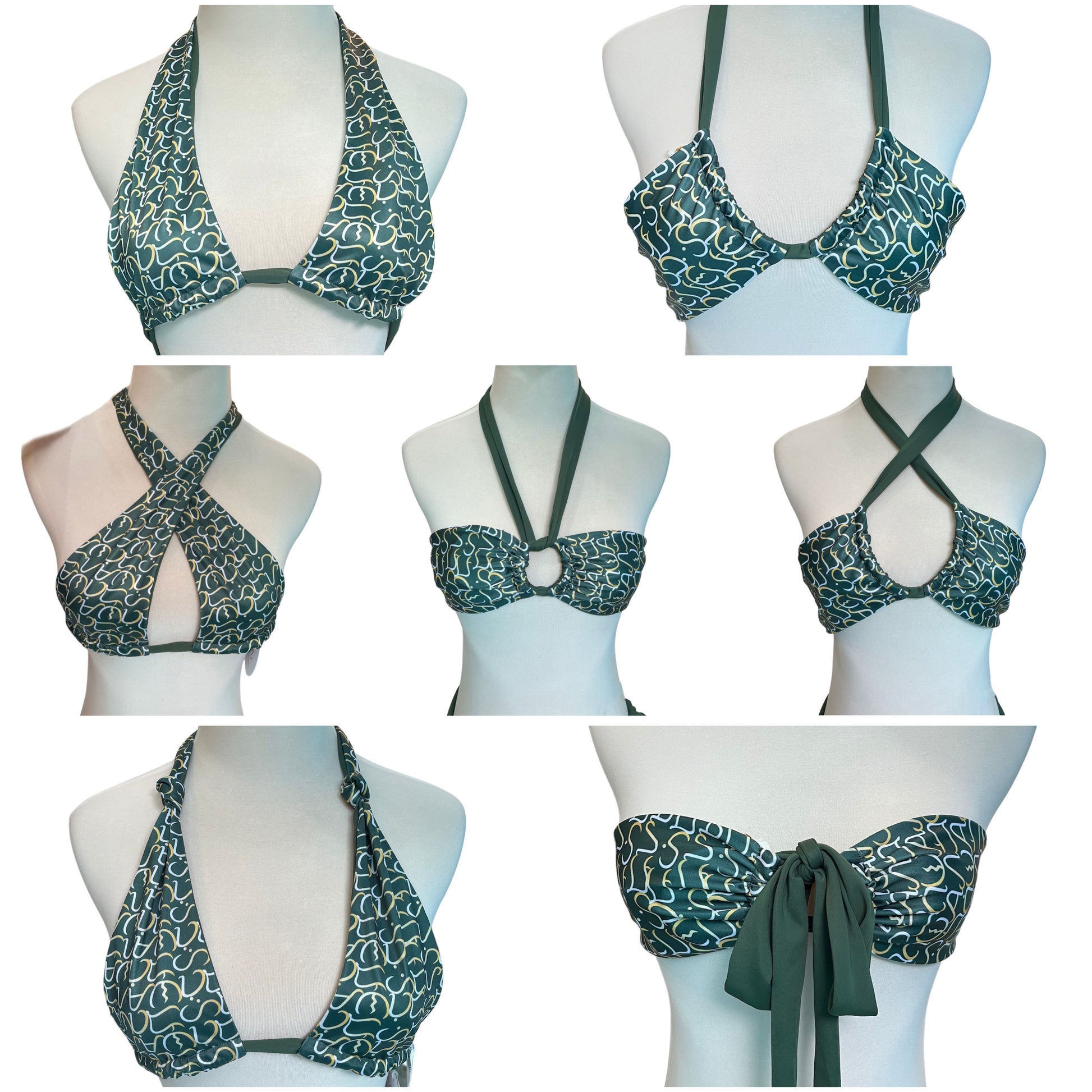 Introducing the Anahaw Bikini Set in Pretender Green, featuring a versatile bikini top with 7-8 different styling options & an adjustable, mid-rise cheeky bikini bottom with a waistband. This set is reversible, showcasing signature prints in Baybayin on one side and a solid fabric on the other. The mid-rise cheeky bottom provides adjustable coverage.