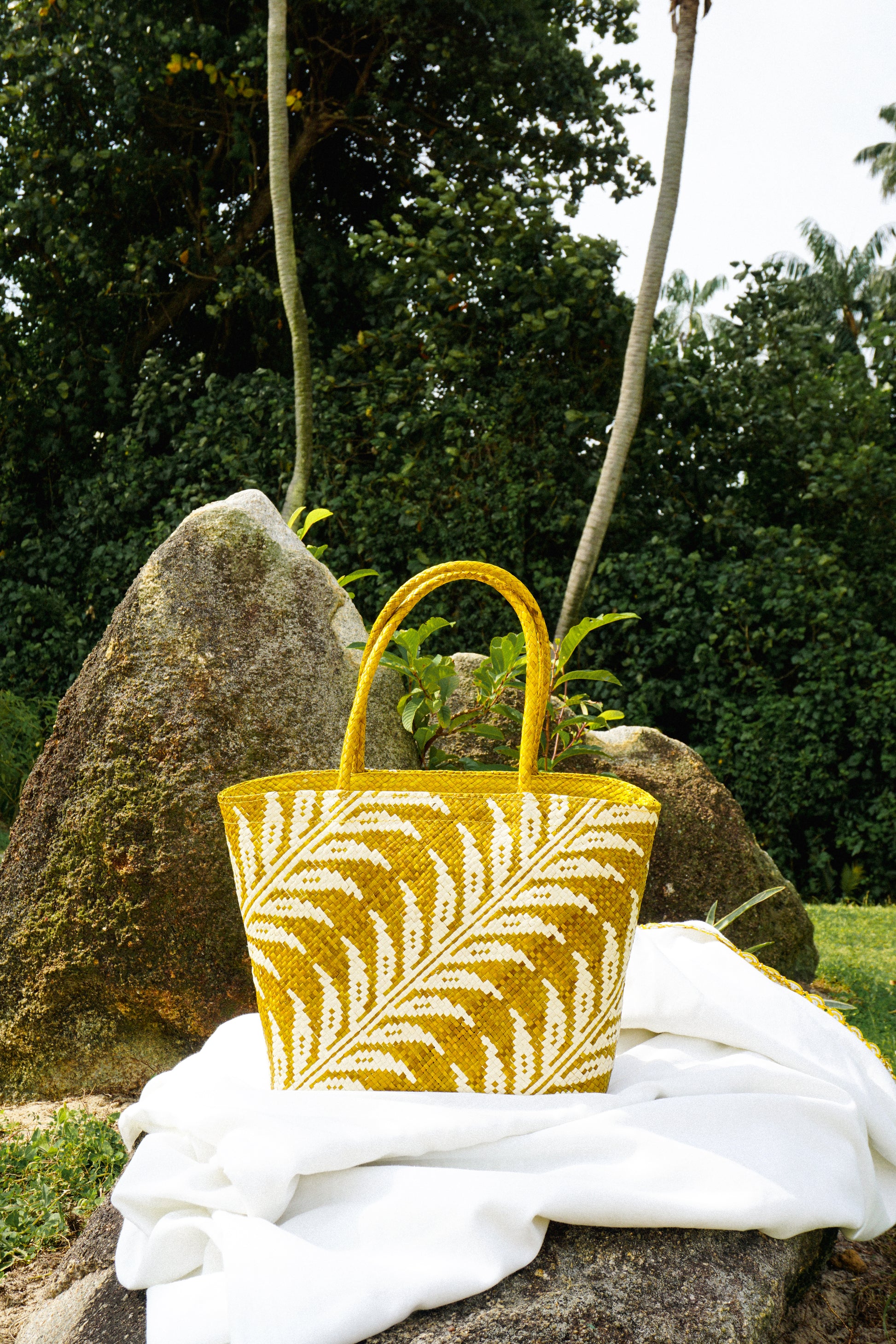 100% handcrafted from natural "Banig" fibers, traditionally used in the Philippines, VISAYAS is a tote bag that blends traditional techniques with modern style. Made from tikog or buri (palm) leaves, carefully dyed and woven into simple or intricate designs. Our VISAYAS Tote Bag features the "Anahaw," a glossy, fan-shaped leaf symbolic of the Philippines, made entirely from natural materials, including "tikog" reed grass commonly found in swampy areas.